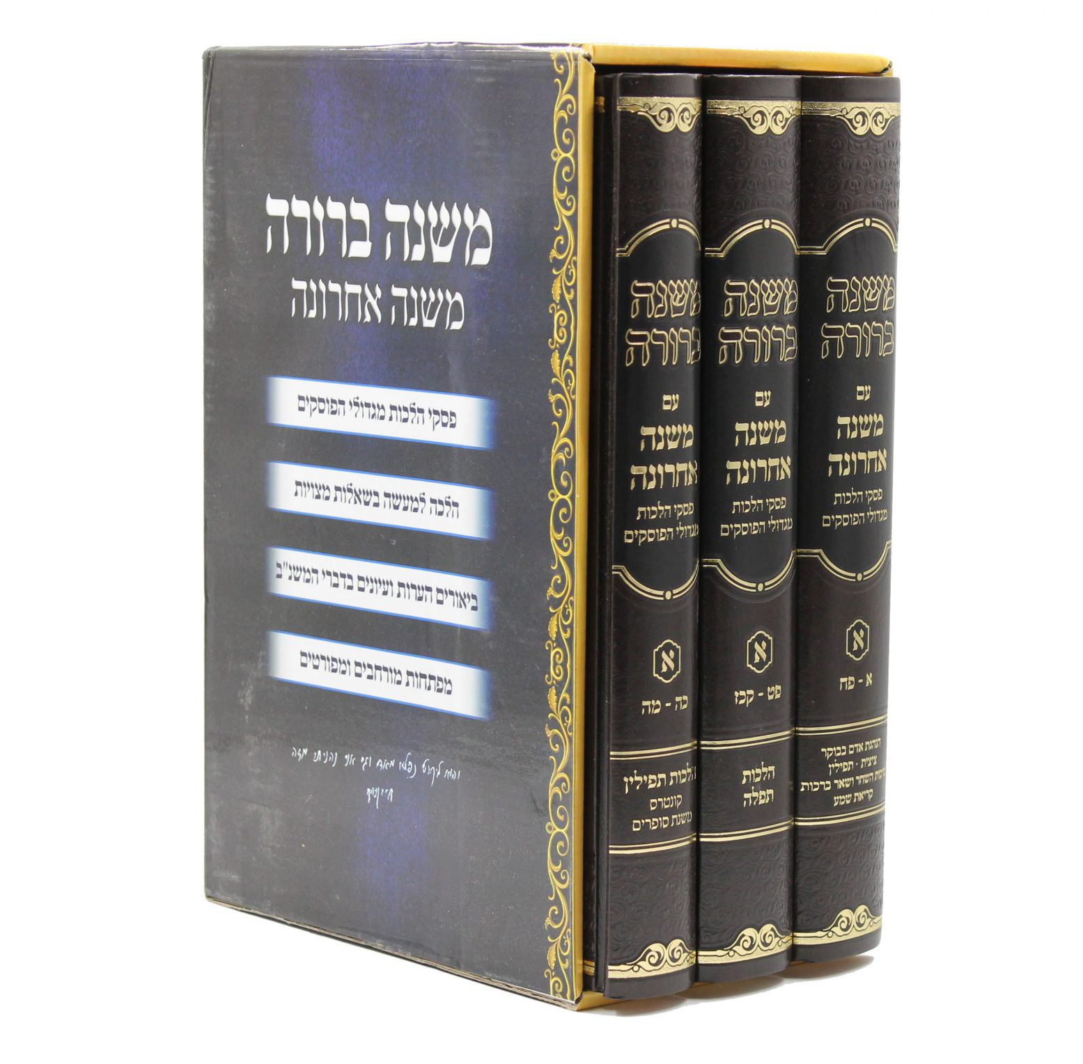 משנה ברורה עם משנה אחרונה חלק א' הכולל שלשה חלקים, וכולל ליקוט פסקי הלכות מגדולי הפוסקים, הלכה למעשה בשאלות מצויות, ביאורים הערות וציונים בדברי המשנ"ב, מפתח מורחב ומפורט.